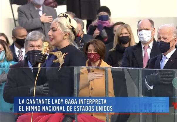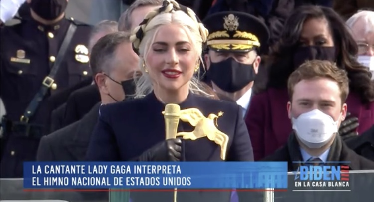 Lady Gaga interpretando el Himno Nacional
