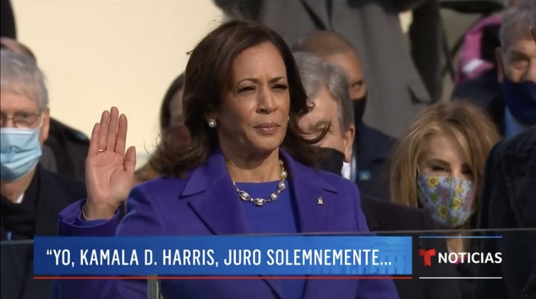 Kamala Harris haciendo juramento