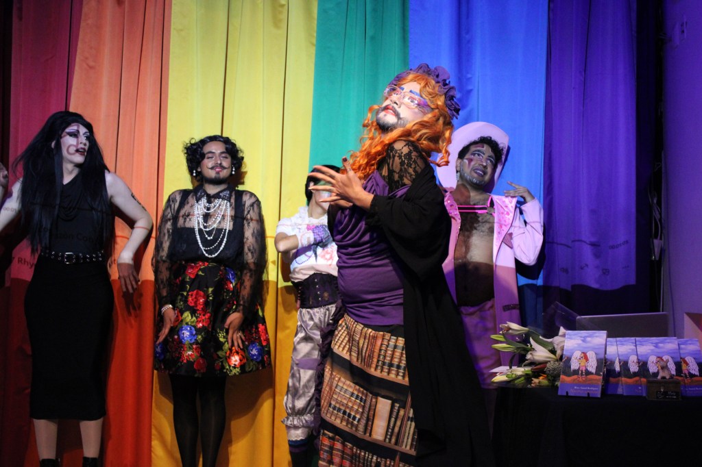 Además de la lectura de algunos poemas, Rhye también realizó una presentación artística y contó con la presencia de cuatro invitades drag, Joss JimAr, Conancio Litico, Romana Cuervo y Polva, quienes realizaron performance de canto y baile.