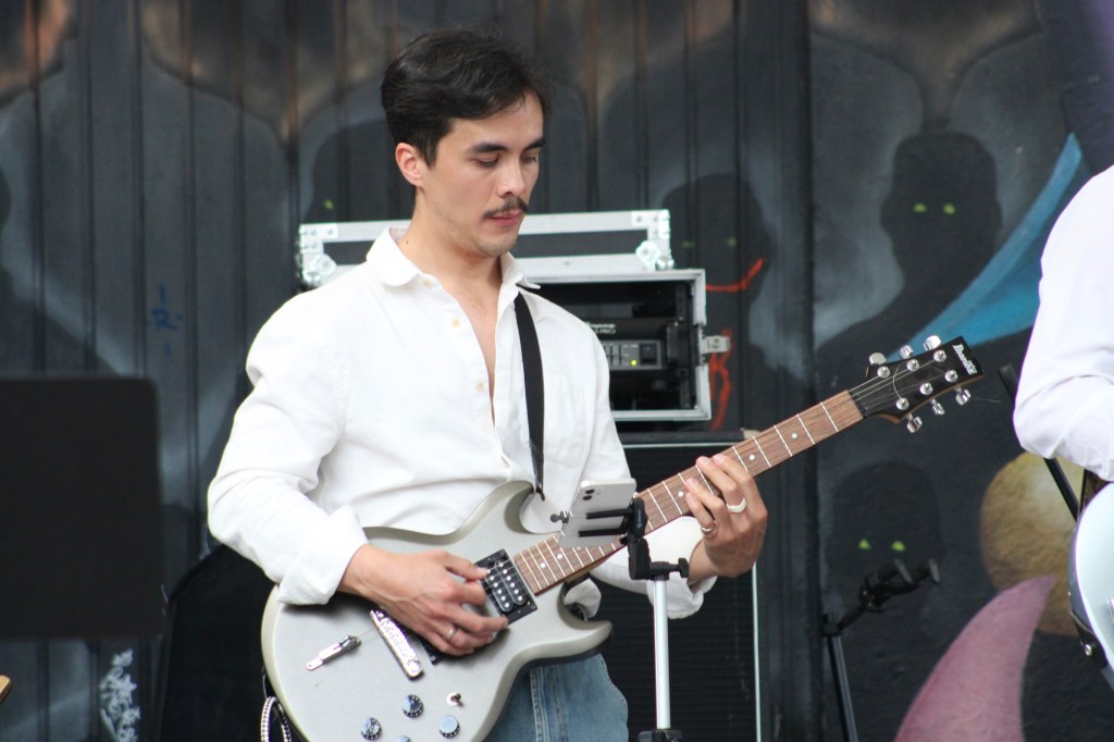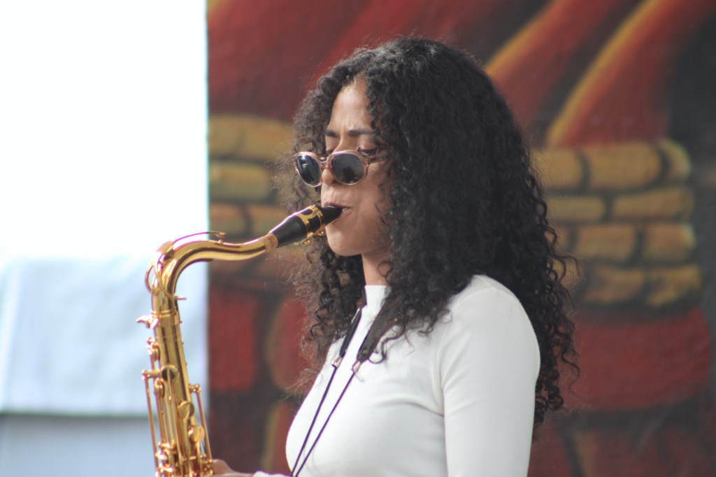 Entre aplausos y baile, la cantante invitó al escenario a uno de los asistentes que se encontraba bailando y cantando sus canciones, momento que ambos disfrutaron, así como los integrantes de la banda, conformada por Edmon en el bajo, Yele en el piano, Meni en la batería, Diego en la guitarra, Casandra en el sax y la negra mexa como invitada especial para tocar el acordeón.