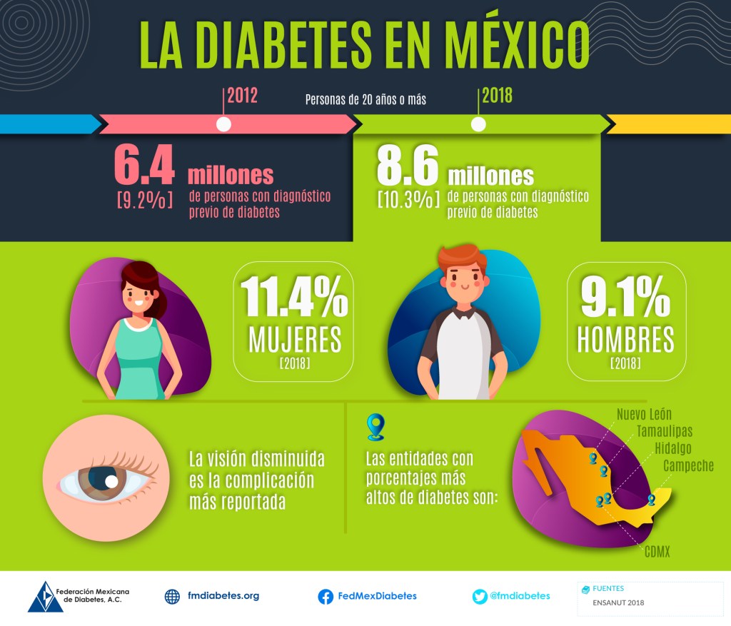 En el año 2018 se presentaron en la página de la Federación Mexicana de Diabetes las estadísticas que se habían llevado a cabo en 2016 sobre la diabetes, las cuales arrojaron que en México, la diabetes ocupa el segundo lugar en las principales causas de mortalidad.