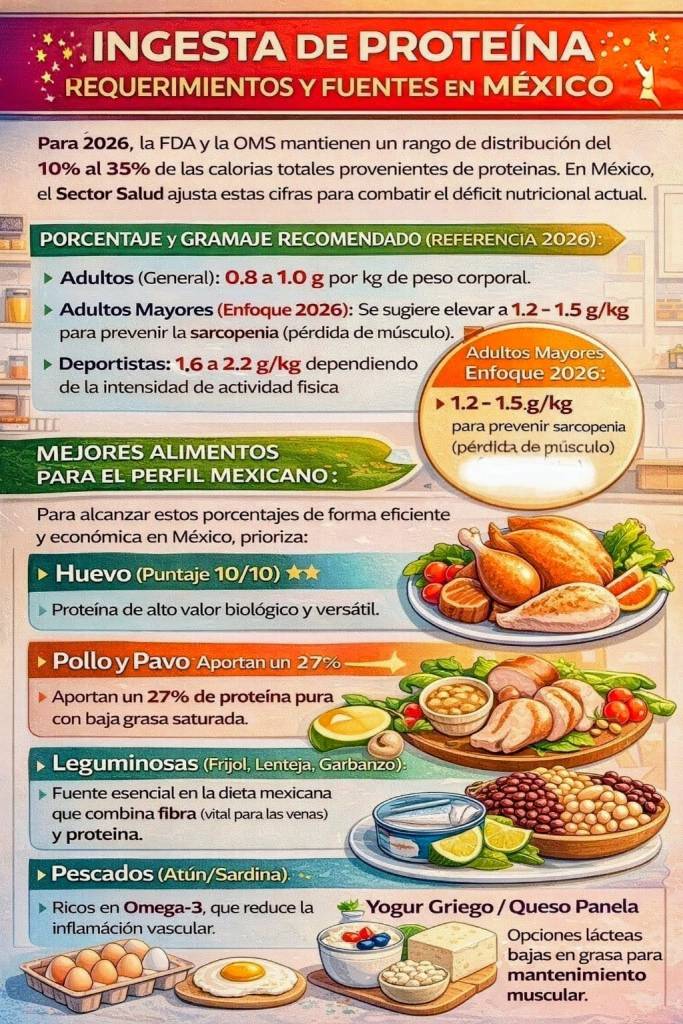 Para 2026, organismos internacionales como la Administración de Alimentos y Medicamentos de Estados Unidos y la Organización Mundial de la Salud mantienen la recomendación de que entre el 10% y el 35% del total de calorías diarias provenga de proteínas. En México, las instituciones del sector salud han comenzado a ajustar estos parámetros con el objetivo de atender el déficit nutricional que persiste en distintos grupos de la población.
