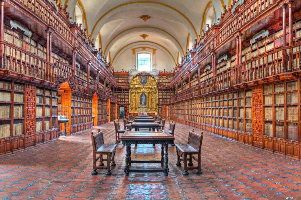 La Biblioteca Palafoxiana se encuentra en el Centro Histórico de la ciudad de Puebla, desde 1981 es un Monumento Histórico de México y desde el 2005 fue incluida por la UNESCO como parte del Programa Memoria del Mundo. Fue fundada en 1646 por el célebre Obispo Juan de Palafox y Mendoza de ahí su nombre y lo que a esta convierte en la primera biblioteca en todo el continente americano. ¡Que privilegio ser lo poseedores de semejante biblioteca! ¿No creen?