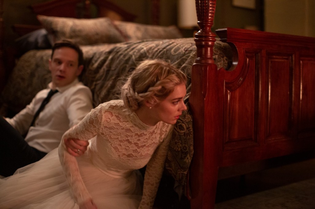 Ahora, ¿por qué decidí hablar de You Are Next? cuando Ready or Not es una cinta más actual. Ready or Not fue estrenada en 2019, dirigida por Matt Bettinelli-Olpin y Tyler Gillet (Scream 5, 2022 y Southbound, 2015) y escrita por Guy Busick y R. Christopher Murphy quienes se vieron involucrados en la antología Castle Rock (2018-2019) basada en las historias de Stephen King. Este cuarteto del terror nos da la bienvenida a la boda de Grace (Samara Weaving) y Alex (Mark O’Brien) en la lujosa mansión de los padres de él; a diferencia de You Are Next, la cinta de Matt y Tyler mantiene el humor negro que nos promete desde el inicio. Sí, hay muerte, desigualdad e incluso menores disparando de un arma, pero ¡ey! las risas no faltaron.
