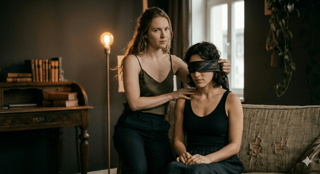 Cubrí sus ojos con una mascada oscura, anudando con fuerza, asegurándome de que no hubiera escape.