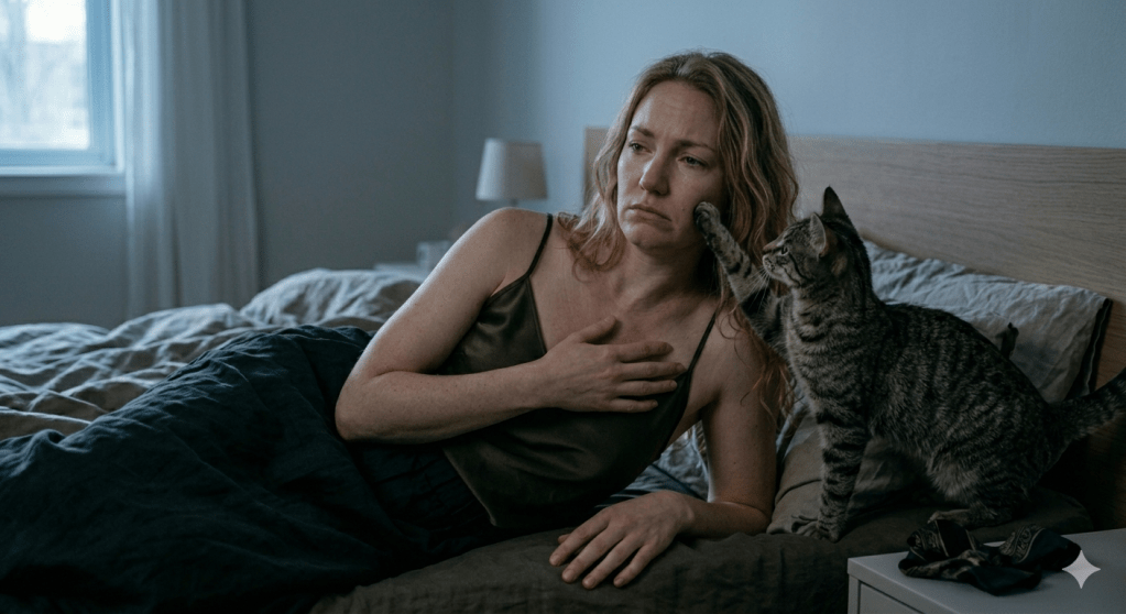 De repente, un golpe en mi cabeza. Levanté la mirada. Ahí estaba yo, acostada en mi cama, con mi gato tocándome la cara, maullando por comida. Y yo, despertando brutalmente de mi sueño, de mi realidad, sin mi final feliz.
