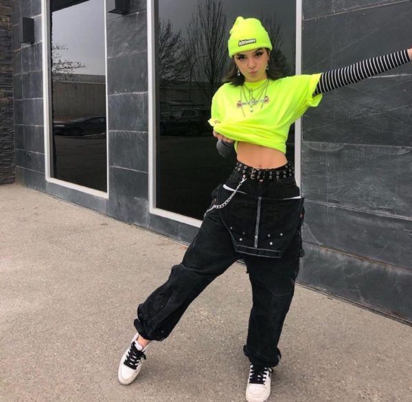 Otro punto a resaltar, y ahora verás por qué, es que en esta moda se usa mucho el color neón, las calcetas de colores y accesorios brillantes en tonos pasteles que te harán resaltar, ¿recuerdas los 90’s?, bueno, algo así. Además, también involucra el cabello, el cual normalmente va de la altura de los hombros a más corto, y que suelen teñir de colores pastel o incluso, neón.